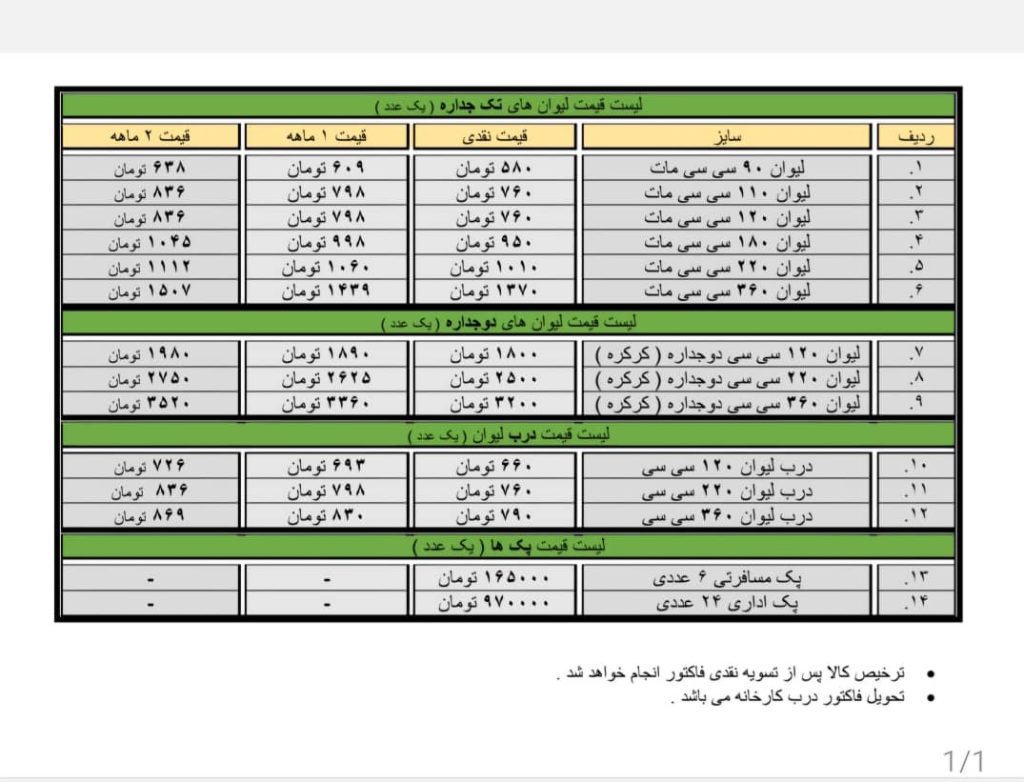 لیست قیمت جدید محصولات از تاریخ 1404/10/05=